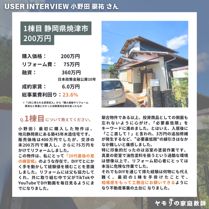 生徒さんが購入した中古戸建物件で、もし売却を希望する場合に、ヤモリが買取価格をオファーします。