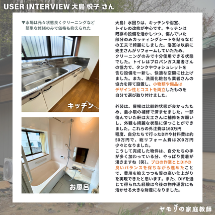 全国のデータを集積させたリフォーム目安単価・部材リストを共有しています。内見同行サービス(有償)も提供しています。